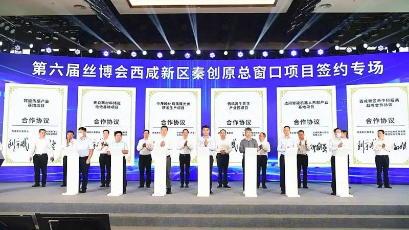 第六届丝绸之路国际博览会西咸新区秦创原总窗口投资环境说明会暨项目签约专场仪式上,秦汉新城签约中茂碲化镉薄膜光伏研发生产基地等7个重点项目,涉及生物科技、新材料、高端装备制造、健康医疗等多个产业领域。