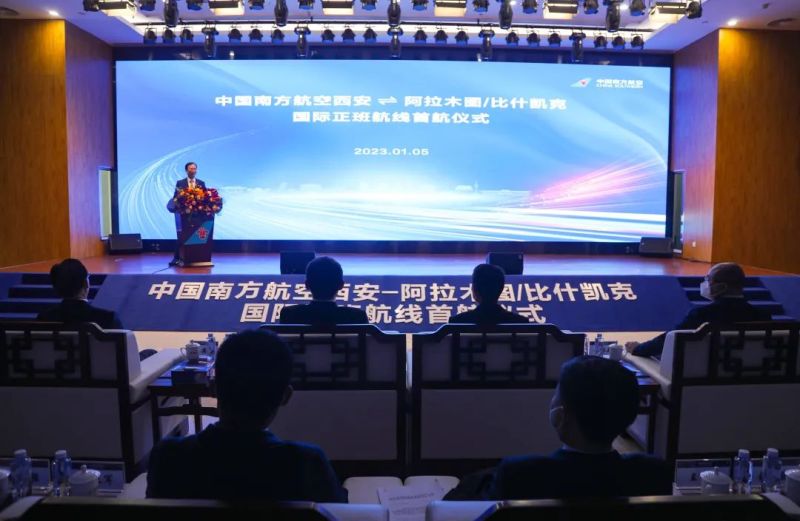 1月5日,中国南方航空西安至阿拉木图、西安至比什凯克国际正班航线首航仪式在空港新城举行,将进一步助力西安国际航空枢纽建设,加强陕西与中亚国家的经贸往来、旅游发展和人文交流,促进临空经济高质量发展。