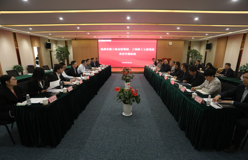 3月9日,上海金桥(集团)有限公司(以下简称“上海金桥”)副总裁季俊、上海建工七建集团有限公司副总裁邬朝嵘一行来访空港新城并进行座谈。空港新城管委会主任张蔚出席,空港集团领导蒙斌彬、白熠、曹军参加。