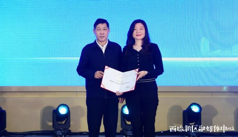 现场还为“科创中国”(西咸新区)大健康产业服务工作站揭牌,并向入选“科创中国”新锐企业榜的西咸新区予果微码生物科技有限公司颁奖。
