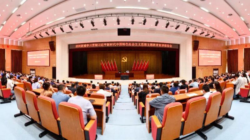 为深入开展学习贯彻习近平新时代中国特色社会主义思想主题教育,进一步统一全体干部员工的思想认识,坚决捍卫“两个确立”,坚决做到“两个维护”,6月7日,西咸新区泾河新城举办学习贯彻习近平新时代中国特色社会主义思想主题教育宣讲报告会。泾河新城党委班子成员,泾河集团党委副书记、总经理参加。