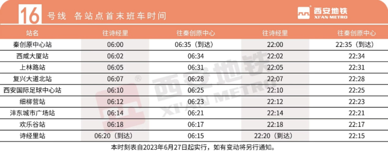 6月27日上午11时,西安地铁16号线一期,正式开通初期运营。