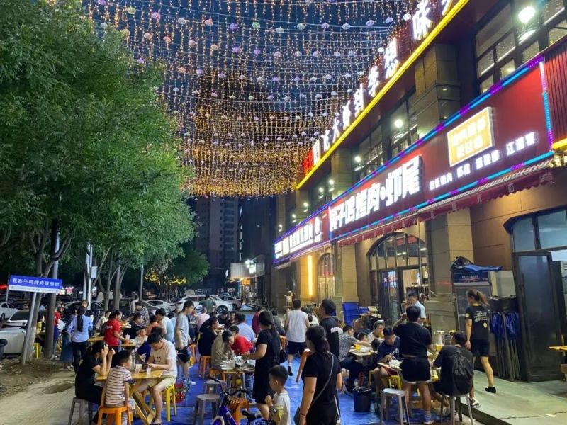 正在观看表演的王永生开心地说:“自从商业街建起来后,我们的生活变得更方便了,家门口就有超市、便利店,天黑了下楼还有夜宵吃,街区的夜景也很漂亮。”烧烤店老板杨勇忙得不亦乐乎:“现在天气越来越好,晚上人流量更多,我每天下午两点开门,人多的时候能开到凌晨1、2点,商业街支持搞夜经济对我们来说是特别利好的政策!”