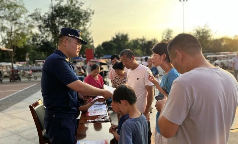 活动期间,宣传员秉持宣传教育“贴近实际、贴近生活、贴近群众”的原则,扩大消防宣传覆盖面。针对夜间消夏人群集中的特点,深入广场人员密集场所,向过往群众发放《社区消防》《家庭防火自救常识》《消防法规知识手册》等各类资料。同时,利用消防宣传车循环播放各类消防宣传公益广告、消防安全知识短片,邀请群众参观和体验了大篷车里的消防设施器材,为在场群众讲解消防器材以及如何发现和消除身边的火灾隐患、家庭火灾如何自救、火场逃生自救等消防知识,并提醒居民提高消防安全意识,注意暑期防溺水安全教育。