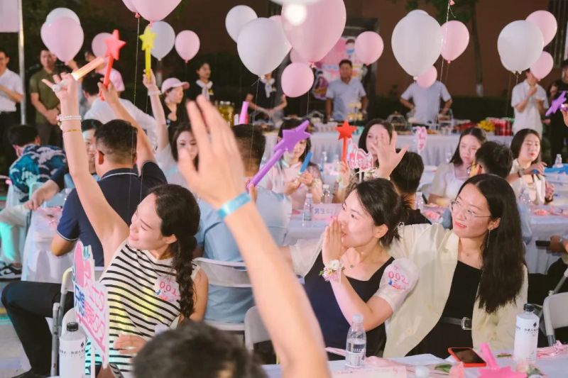 多项轻松欢快的互动游戏拉近了单身青年的距离,也架起了彼此交往的“鹊桥”。随后,互有心意的嘉宾上台,进行互动表白,并有12对嘉宾成功牵手。