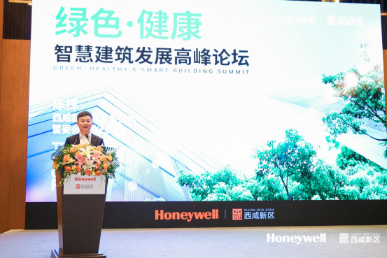 陈辉在致辞中表示,西咸新区作为国家创新城市发展方式的综合试验区,从设立之初就坚持低影响开发、贯彻绿色发展理念,先后在城市建设中探索实践海绵城市、无干扰中深层地热、综合管廊及绿色建筑等创新技术应用,最大限度减少在开发过程中对环境的影响,充分利用清洁能源、绿色创新技术,为实现碳中和、碳达峰探索西咸路径。希望通过此次论坛,进一步与霍尼韦尔公司及其他经验丰富的建筑行业的研究者共同探讨分享绿色建筑发展的新举措,共谋合作,共同谱写合作共赢的新篇章。