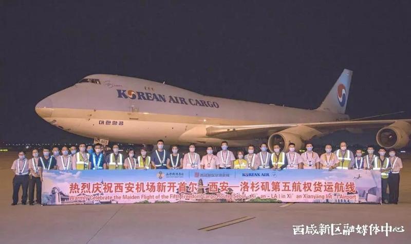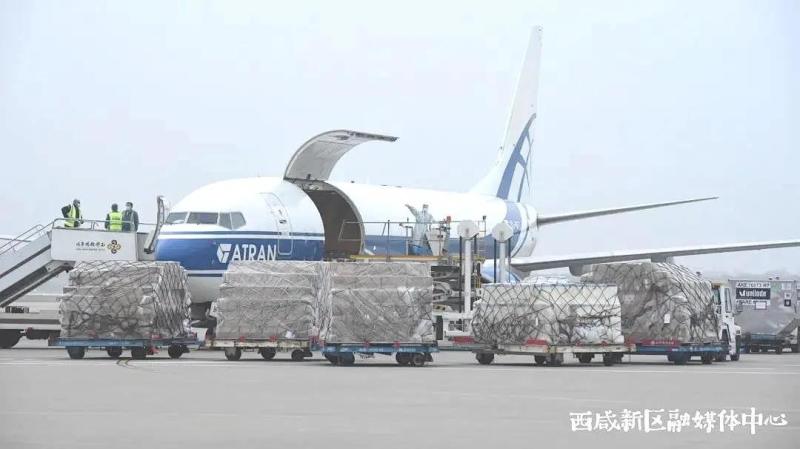 莫斯科-西安-阿拉木图货运航线是陕西第三条第五航权货运航线。此前,为保障三星半导体二期扩建顺利推进,空港新城分别于2019年和2020年先后开通首尔-西安-河内、首尔-西安-洛杉矶第五航权货运航线,截至目前已累计稳定运行121班。这些航线搭载着三星半导体的进厂设备、光刻胶、芯片及高端笔记本电脑、智能手机、新能源汽车零部件等高附加值货物高频穿梭于全球各大货运枢纽,年运输国际货量达上万吨。