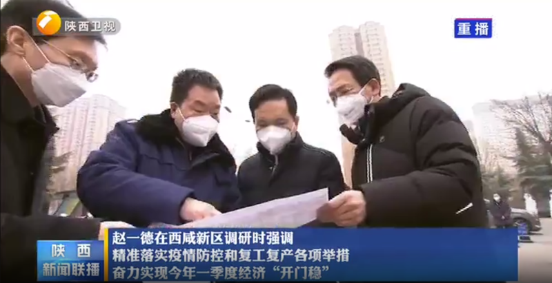1月22日,省长赵一德在西咸新区调研检查疫情防控和复工复产工作。他强调,要深入学习贯彻习近平总书记关于统筹疫情防控和经济社会发展重要论述,按照省委、省政府工作部署,精准落实疫情防控和复工复产各项举措,奋力实现今年一季度经济“开门稳”。