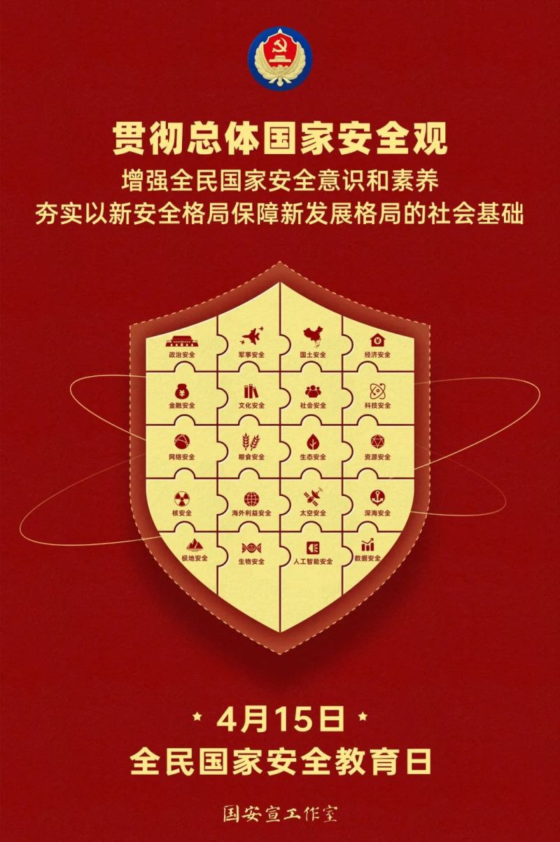 2023年4月15日,我们即将迎来第八个全民国家安全教育日。今年国家安全教育日主题是“贯彻总体国家安全观,增强全民国家安全意识和素养,夯实以新安全格局保障新发展格局的社会基础 ”。