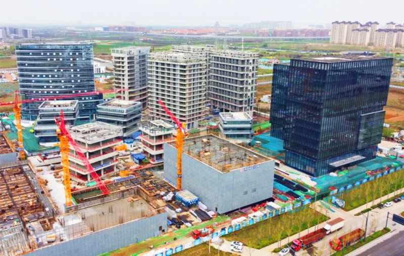 项目分三期开发建设,目前一期累计封顶楼宇11栋,5栋楼宇幕墙施工均已完成,4栋楼宇正在进行幕墙施工,预计今年下半年一期全面交付使用。