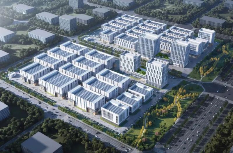 项目南区主要建设14栋厂房和2栋配套用房,截至目前,西侧9号-16号厂房施工已全部完成,园区道路也已施工完毕,正在进行景观绿化等施工;东侧3号-8号厂房室内安装、外立面施工及园区道路建设正加速推进。南区厂房即将进入全面竣工交付阶段。