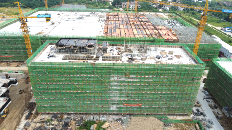 截至目前,项目3、4、5号楼主体已封顶,1号楼东侧8层板搭设完成,西侧7层混凝土浇筑完成,近期可实现封顶,2号楼3层模板搭设已完成。