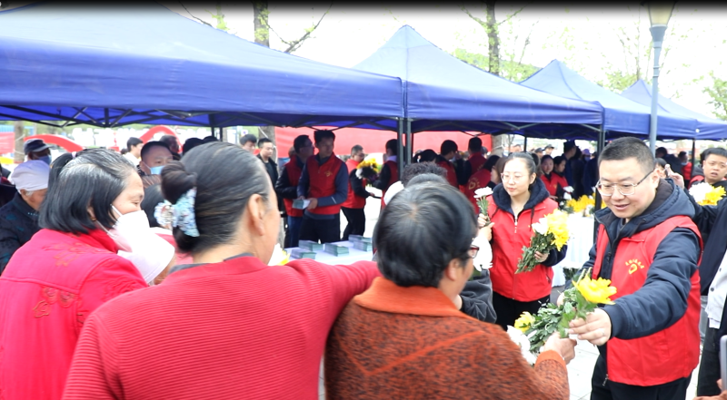 底张街道新时代文明实践志愿服务队围绕“我们的节日·精神的家园”主题,开展“文明祭祀 绿色清明”志愿服务活动,为居民群众发放鲜花和丝带,引导大家以奉献鲜花的形式追思故人先烈。