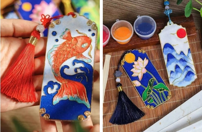 掐丝珐琅书签DIY:泛鹢台提供各式空白书签,你可以在方寸大小的书签上描绘色彩,制作一枚承载个人情感与雅致品味的专属书签,让假期记忆变成实用又有意义的小物件。