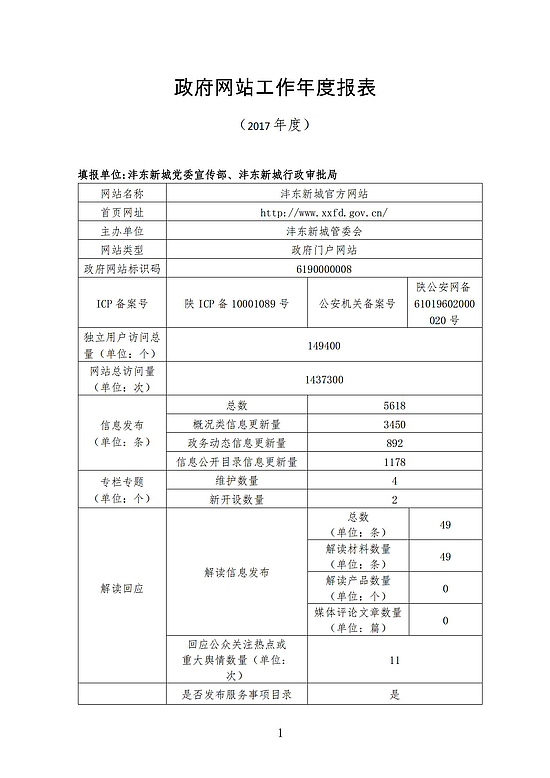陕西省西咸新区沣东新城管理委员会政府网站工作年度报表