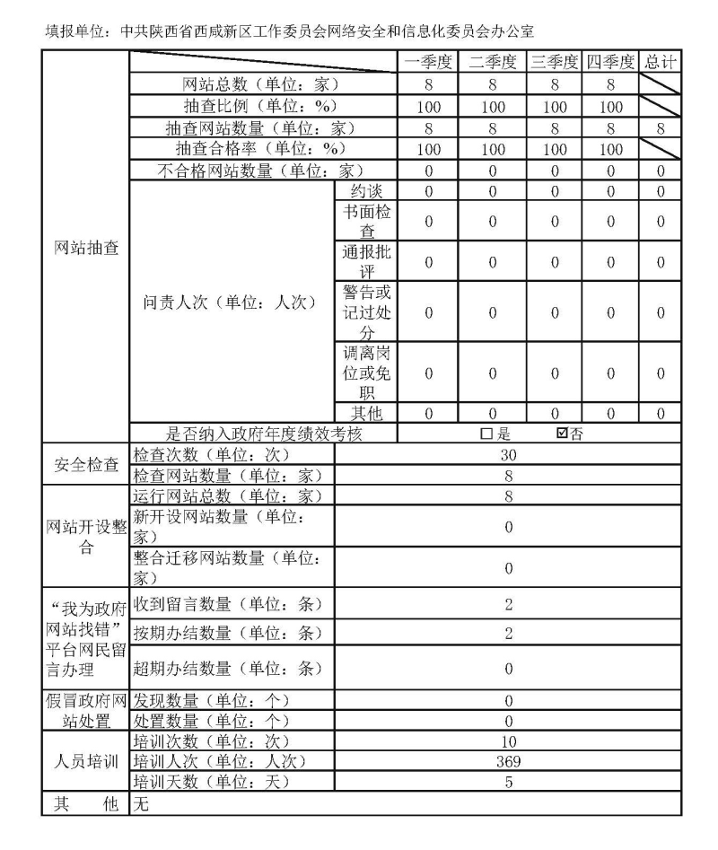 陕西省西咸新区开发建设管理委员会政府网站监管年度报表