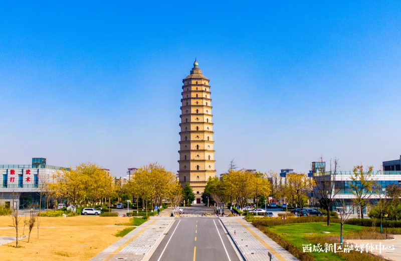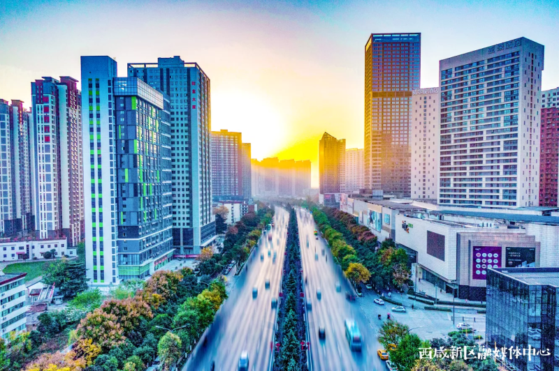 车辆川流不息,高楼鳞次栉比,西咸新区沣东新城的三桥新街已然成为大西安的交通主动脉,车道中央的绿化带和两侧的绿化分隔带让这里在冬日也毫不萧瑟。