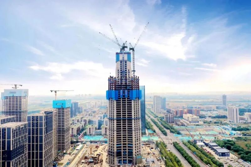 目前,项目主体塔楼结构施工至地上60层,高度突破250米,首台外挂动臂塔吊高空重装施工顺利完成,标志着项目核心筒结构施工再加速。