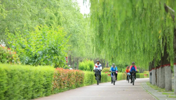 在这里,高大的行道树遮盖出清凉的绿荫,国槐、乔木、红叶石楠、金叶女贞在不同的季节有不同的景观。河边有林,林中有路,路旁是景,行走在其中,处处是美景。