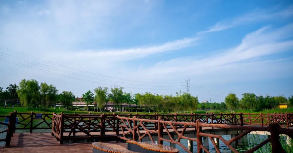 滩区不仅种植了绿色植被保护渭河自然生态,更有机融入秦汉历史元素,打造出灵渠广场、丝路观廊、绿地泡泡、科普中心、鱼跃码头、同德广场、童趣广场等主题各异的休闲游览、科普教育场所,形成了自然野趣+人文休闲的湿地滩区新貌。