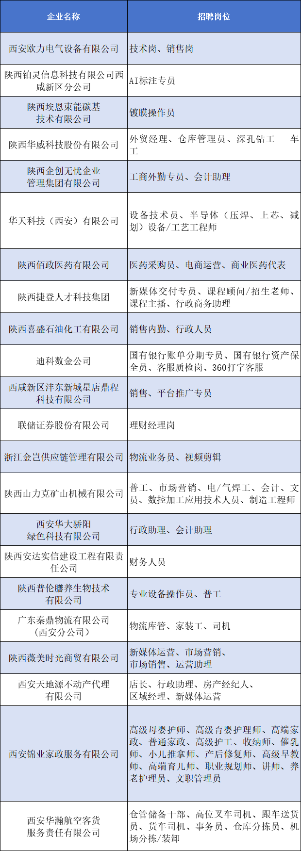 招聘企业及岗位名单