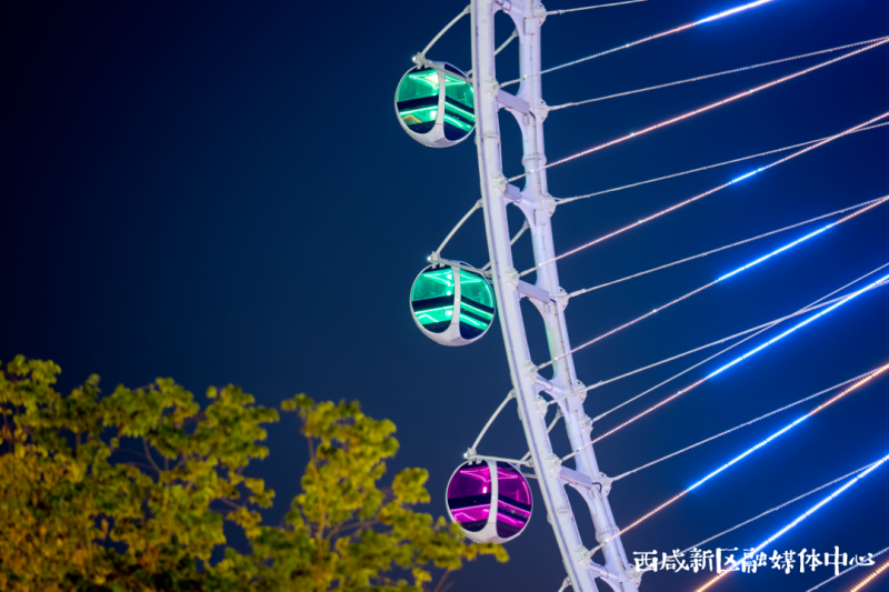 主题三“视觉狂欢”:活动3项,您可乘坐西安欢乐海岸·OCT1314摩天轮,在百米高空中感受辽阔惬意的沣河美景和玛雅海滩欢乐气息,观赏摩天轮浪漫光影秀。也可以在大秦文明园秦文明广场喷泉,感受水与光的交融,来一段美轮美奂的光影视觉体验。还可以到沣西吾悦广场感受夜营电影节的超强氛围感。