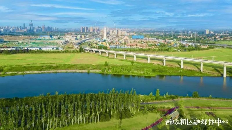 沿着沣河一路走来,有汉武帝水兵操练地、牛郎织女爱情传说起源地的昆明池,有风雅诗韵的诗经里小镇,有丰镐二京、建章宫、阿房宫等历史遗址,有风景优美的沣河湿地公园、沣河生态公园、沣河森林公园,有498米高的丝路国际中心,还有文旅融合示范区华侨城……