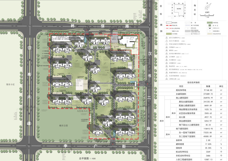 项目概况:项目位于西咸新区秦汉新城汉高大道以东、韩信路以南、汉书二路以西、李广街以北区域。规划净用地面积91168.83㎡,总建筑面积373389.72㎡,主要建设住宅及相关配套。详见总平面示意图。