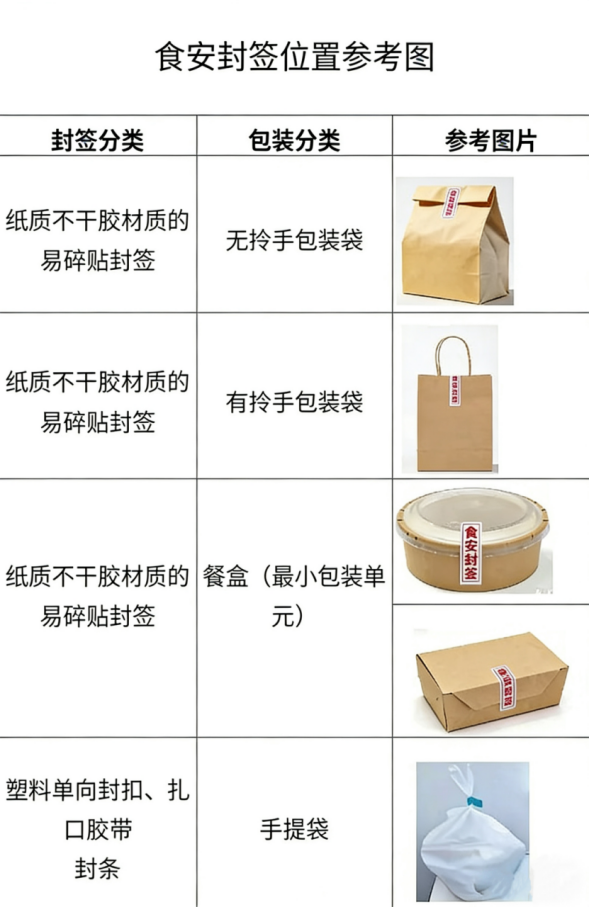 6.鼓励在封签上标注商家名称、餐品信息、反食品浪费温馨提示等内容,强化溯源与消费提示。